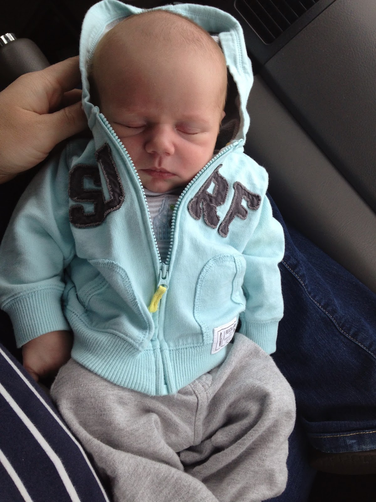 Tyson turned 1 month old right after Grandma left. He weighed in at a whopping 12# 6oz! He gained 2 lbs in 2 weeks! Nothing wrong with his eating!
